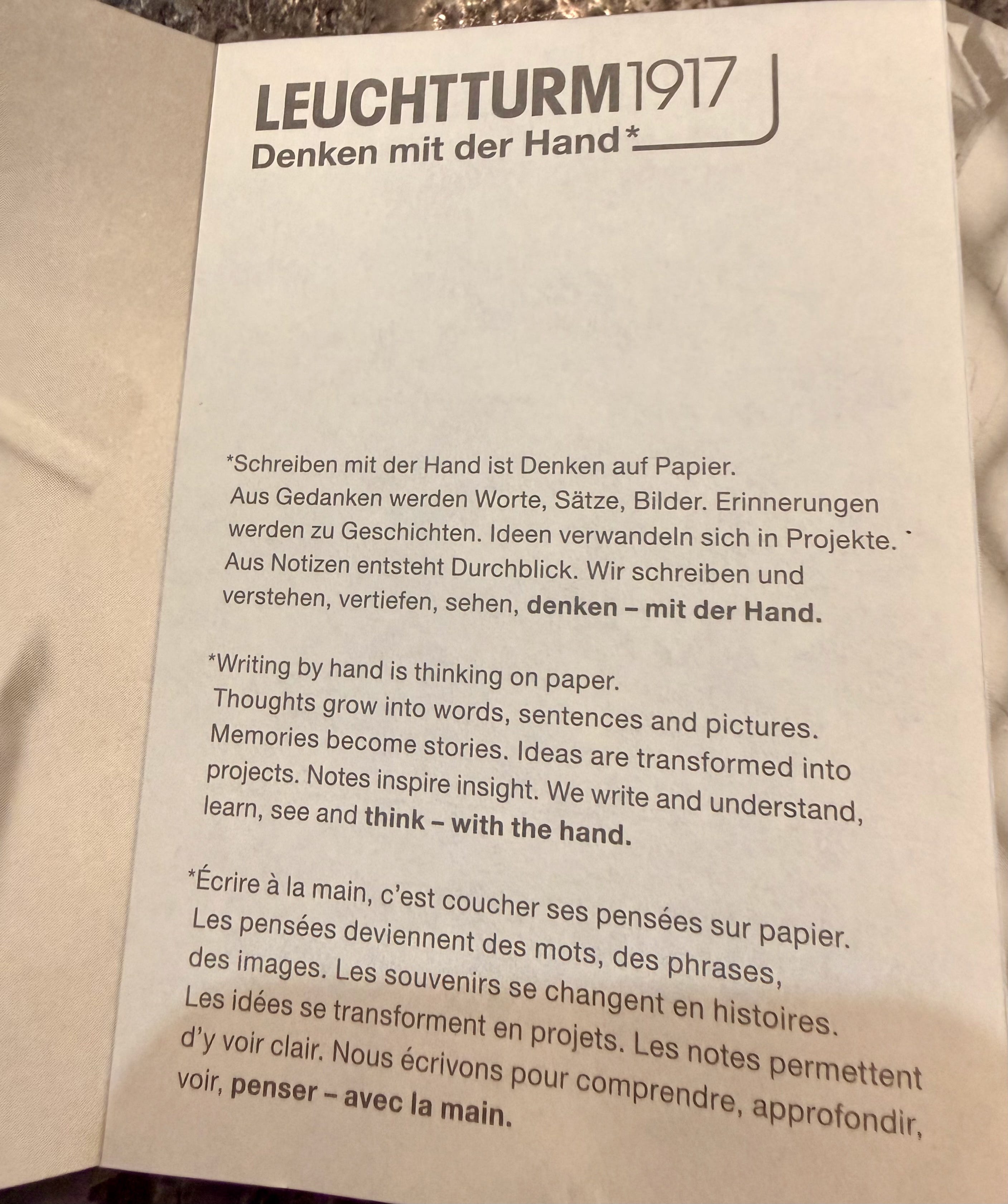 Memories become stories. Ideas are transformed into projects. Notes inspire insight. We write and understand, learn, see and think — with the hand.